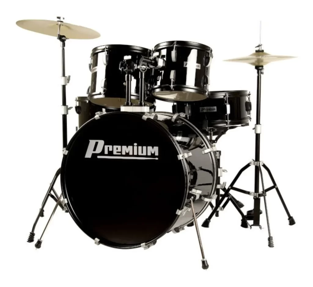 A Premium DX722 BK é um kit completo, já incluindo banco, pratos e ferragens. Ou seja, você não precisa gastar com complementos para começar a tocar.