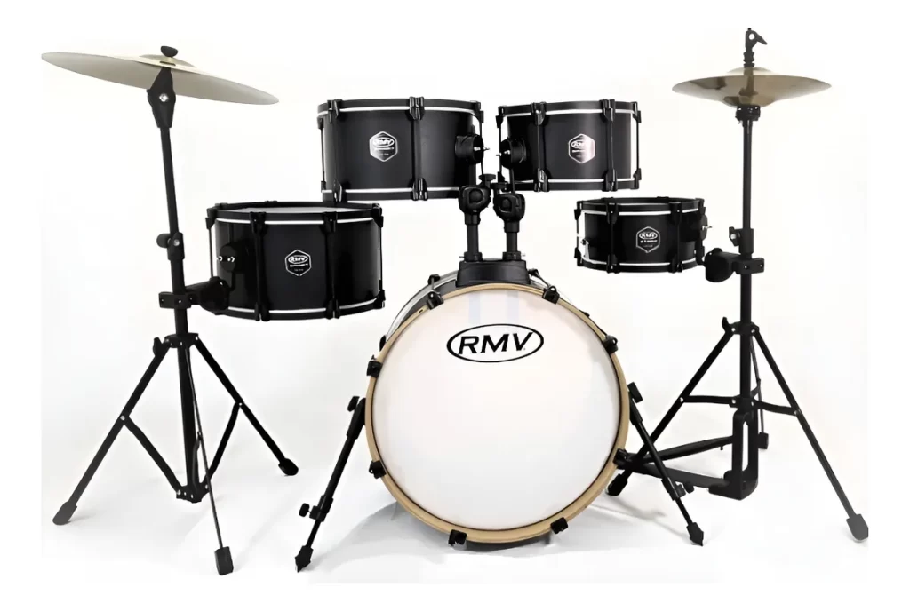 A RMV Exclusive e um kit completo, com 3 tons, bumbo, pratos e ferragens reforçadas. E uma bateria de excelente custo-benefício, indicada para iniciantes, intermediários e para músicos proficionais.