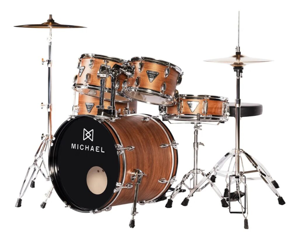 A linha Michael Trinity é conhecida pelo seu visual arrojado e sonoridade envolvente. O modelo DMT218 Gold Bright, com bumbo de 18 polegadas, é compacto, mas entrega potência sonora impressionante.
